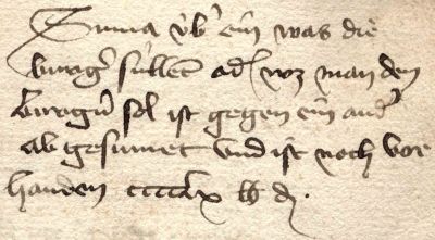 22 Suma über ein was die 23 burger süllent aber was man den 24 burgern sol ist gegen einander 25 abgesumet und ist noch vor 26 handen CCCCLx lb dn